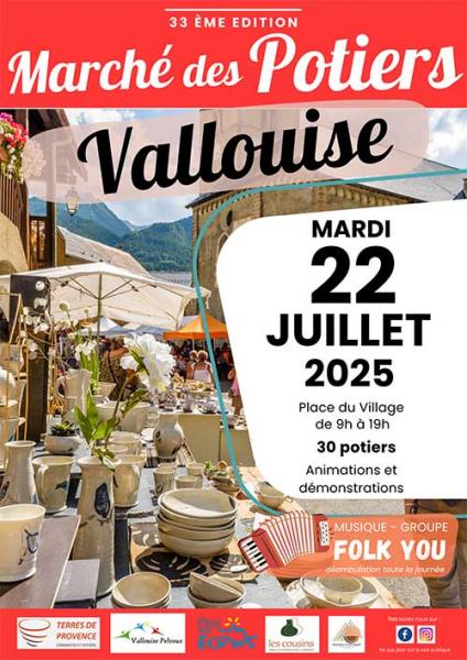 Join us on Tuesday, July 22, 2025, in the village square of Vallouise to celebrate the art of ceramics! - 30 potters from all over France will exhibit their pieces all day, from 9 a.m. to 7 p.m.! - Pottery wheel demonstrations throughout the day - Also, children's introductions to modeling - One-day crafting of a ROPE JAR to discover this exceptional technique - Stoneware, earthenware, porcelain, raku... there will be something for everyone! A beautiful day set to music by the acoustic trio FOLK YOU, with a lovely accordion, violin, and guitar sound. A beautiful day is in the making! Mark your calendars
